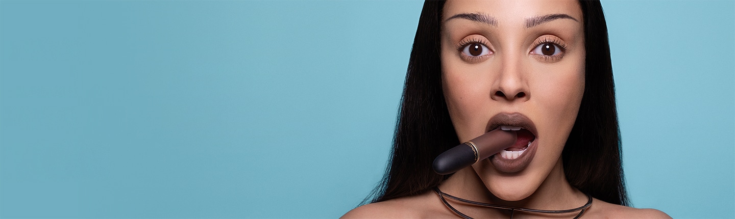 Val op en ga voor gedurfd met de kenmerkende lipcombo van Doja Cat, met Lady Danger omlijnd en gedefinieerd met Cherry.