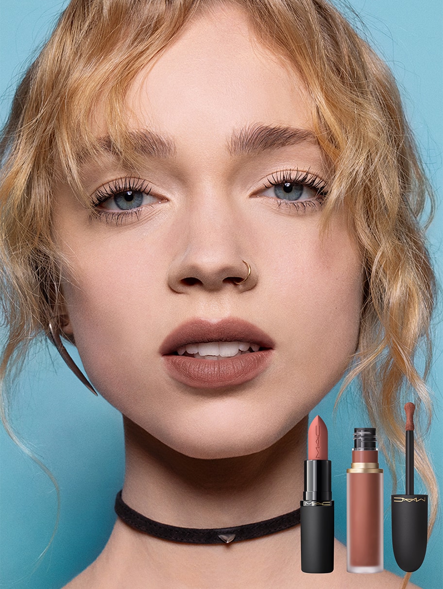 Krijg een hazy nude flush zoals Ella Dalton met Teddy 2.0 op de lippen en Taken op de wangen.